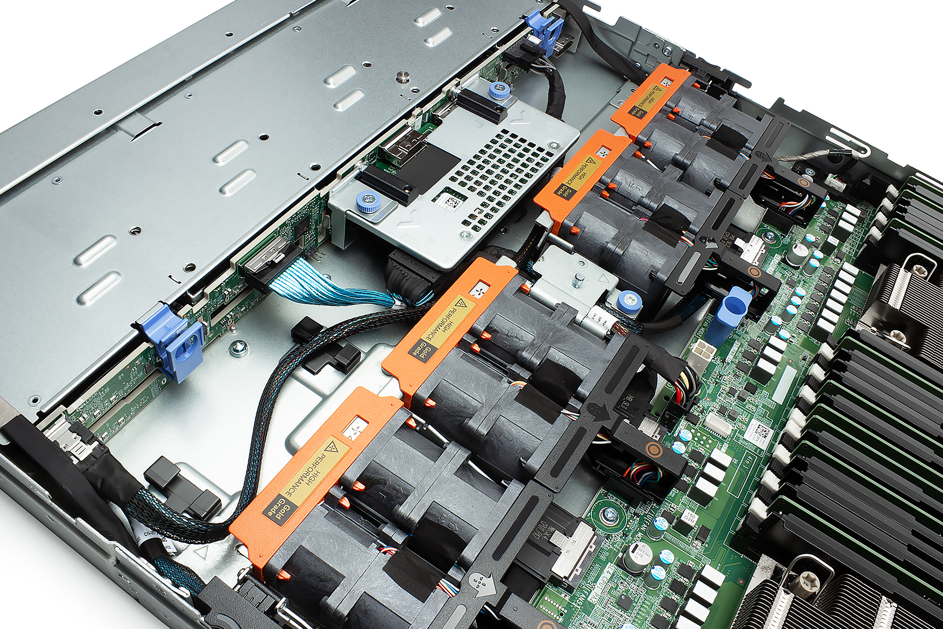 Diskový řadič v serveru umožňuje vytvářet úložiště pro data nad více fyzickými disky. S jeho pomocí lze nakonfigurovat různá RAID pole (např. RAID 0, RAID 1, RAID 5, RAID 6, ...), která kombinují disky pro vyšší výkon, větší kapacitu a zajištění datové redundance. Cache paměť na řadiči urychluje operace čtení a zápisu tím, že dočasně ukládá data. Baterie (BBU) chrání cache obsah při výpadku napájení, čímž zajišťuje, že se důležitá data neztratí. K diskovým řadičům SAS SATA nelze připojit NVMe disky.