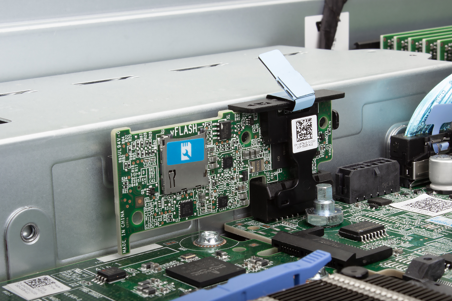 Diskový řadič pro disky s rozhraním SAS / SATA Diskový řadič v serveru umožňuje vytvářet úložiště pro data nad více fyzickými disky. S jeho pomocí lze nakonfigurovat různá RAID pole (např. RAID 0, RAID 1, RAID 5, RAID 6, ...), která kombinují disky pro vyšší výkon, větší kapacitu a zajištění datové redundance. Cache paměť na řadiči urychluje operace čtení a zápisu tím, že dočasně ukládá data. Baterie (BBU) chrání cache obsah při výpadku napájení, čímž zajišťuje, že se důležitá data neztratí. K diskovým řadičům SAS SATA nelze připojit NVMe disky.