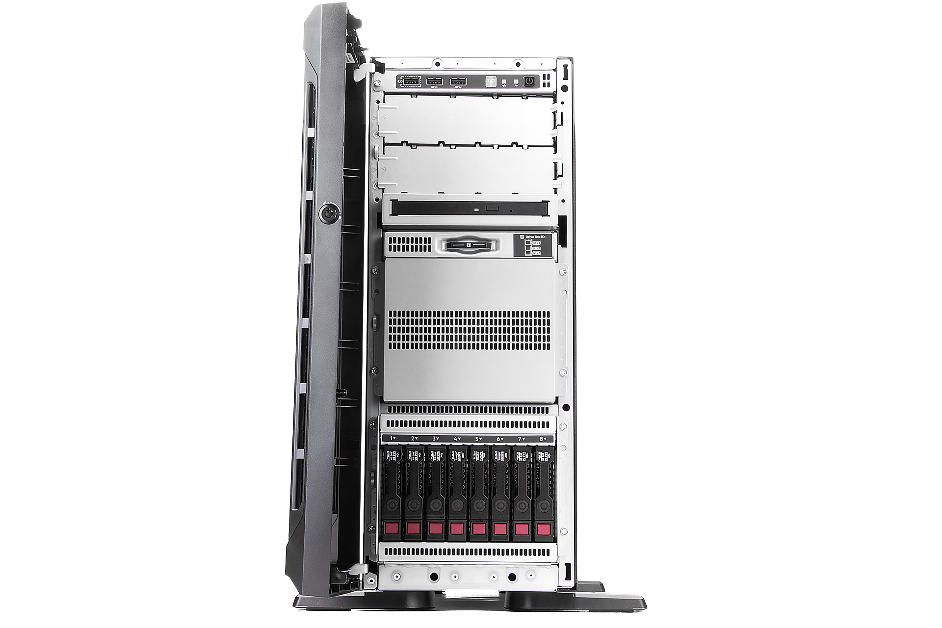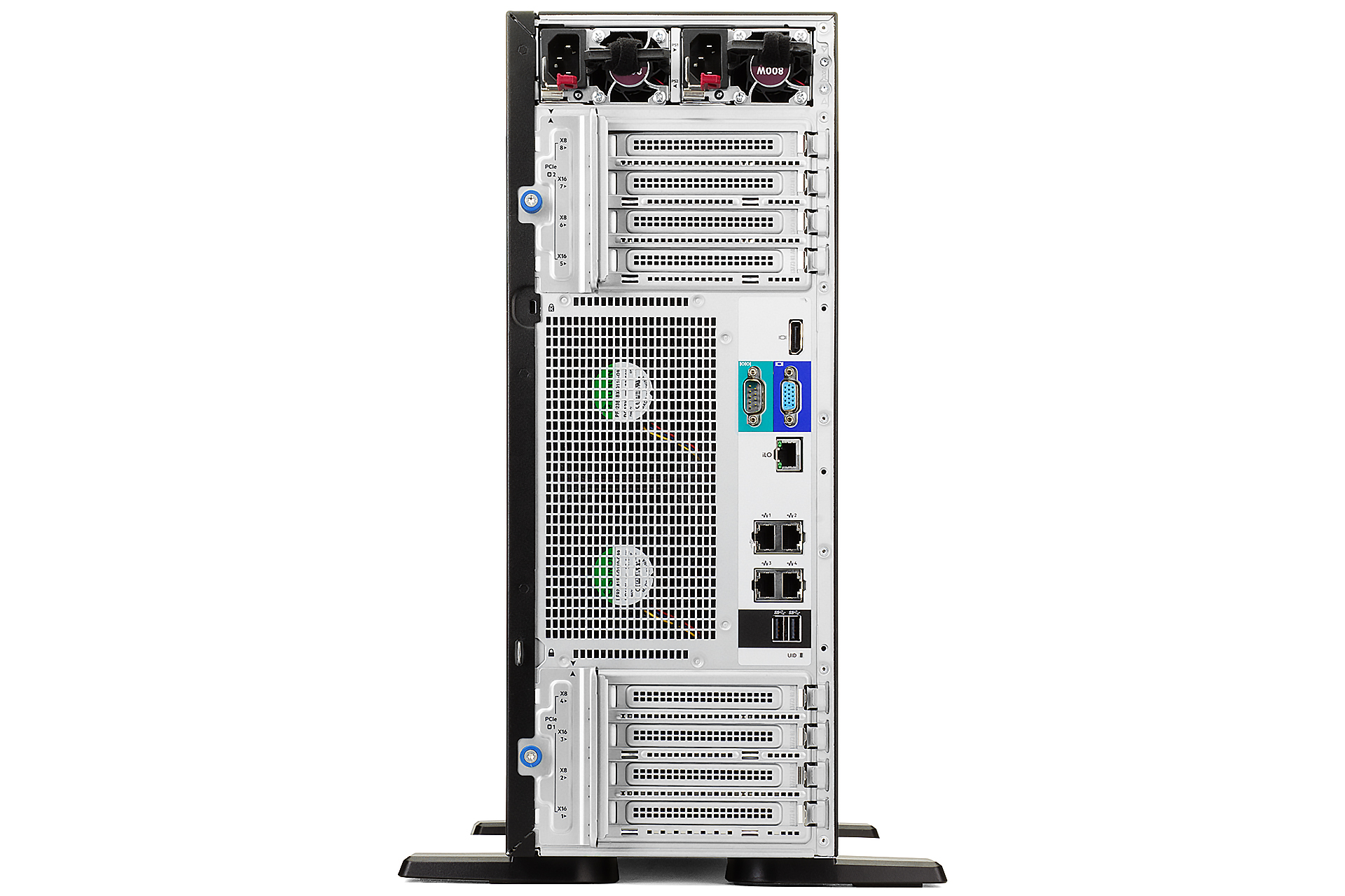 | Zdroj Redundantní hotswap zdroj umožňuje serveru zůstat v provozu i při výpadku jednoho zdroje a vadný zdroj lze vyměnit za chodu. Tato technologie však nenahrazuje UPS, která poskytuje záložní napájení a chrání server před ztrátou dat během výpadků sítě. |
