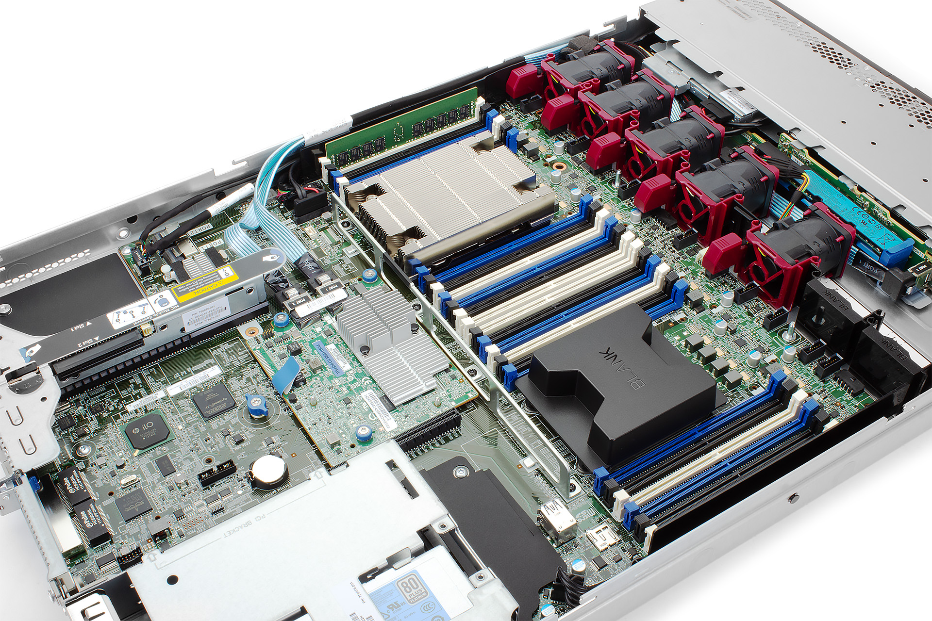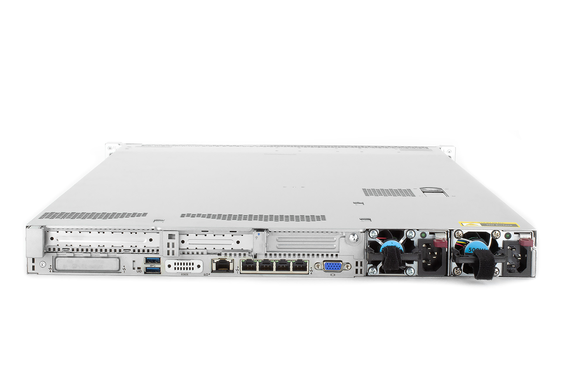 | Zdroj Redundantní hotswap zdroj umožňuje serveru zůstat v provozu i při výpadku jednoho zdroje a vadný zdroj lze vyměnit za chodu. Tato technologie však nenahrazuje UPS, která poskytuje záložní napájení a chrání server před ztrátou dat během výpadků sítě. |